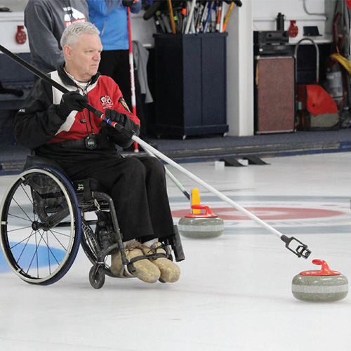 Alec has been part of the Peterborough Curling Club as a wheelchair curler since 2011. At the time there was only one other wheelchair curler at the club. Now, through his dedicated recruiting work, the program has gown to include 11 wheelchair curlers.With the donation of the delivery sticks from ParaSport Ontario’s Play to Podium Fund, wheelchair curlers no longer need to share equipment with others during the twice-a-week Learn to Curl program.